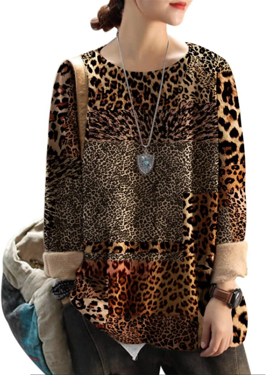 Janein Damen Pullover Oversize Lang Strickpullover Herbst Winter Rundhals Sweater mit Blumenmuster W