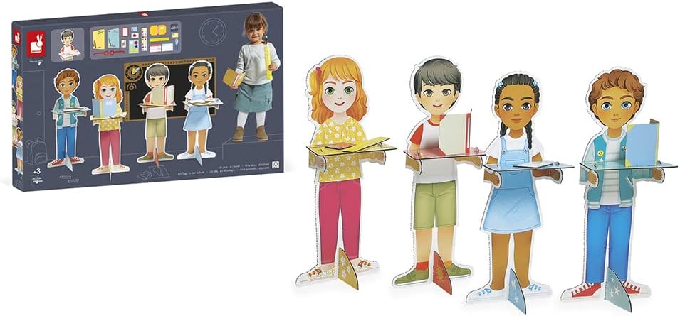 Janod - Ein Tag ... in der Schule - Rollenspielzeug für Berufe - inkl. 250 Zubehörteile - Grosse Fig