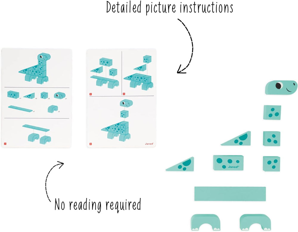 Janod - Bauspiel Cubikosaurus Dinosaurier - 3 Dinos zum Bauen - Lernspiel zum Stapeln - Spielzeug au