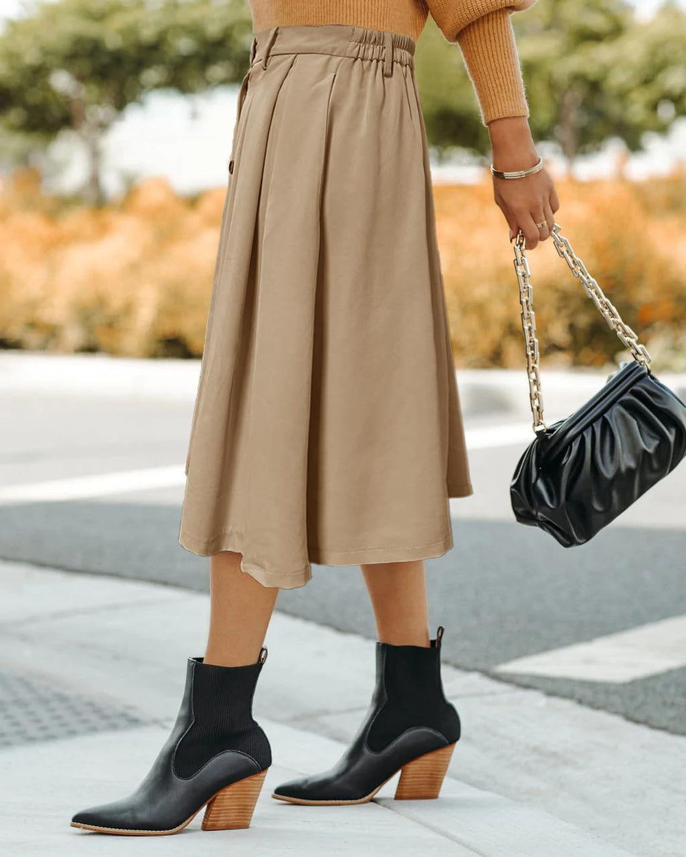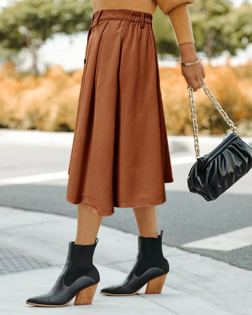 JayscreateEU Damen Rock Midirock Rock Lang Hohe Taille Rock Knielang A Linie Damen Mit Taschen Somme