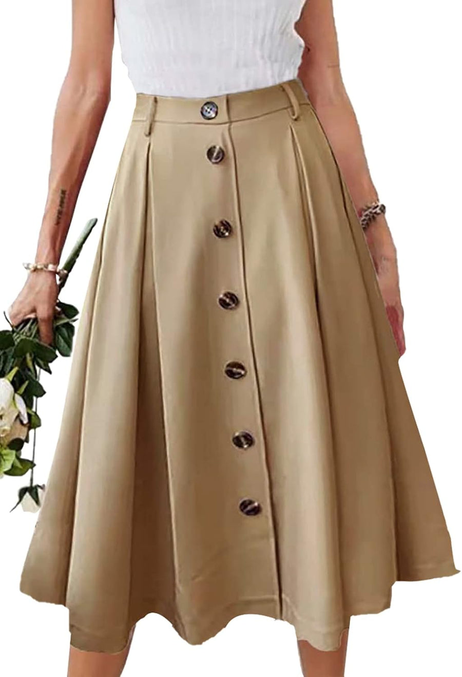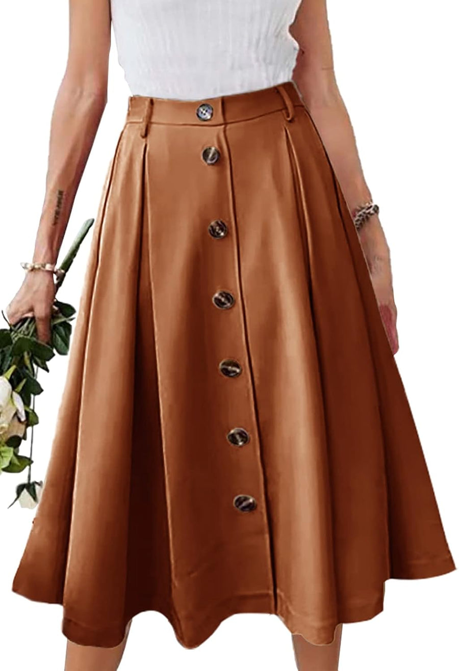 JayscreateEU Damen Rock Midirock Rock Lang Hohe Taille Rock Knielang A Linie