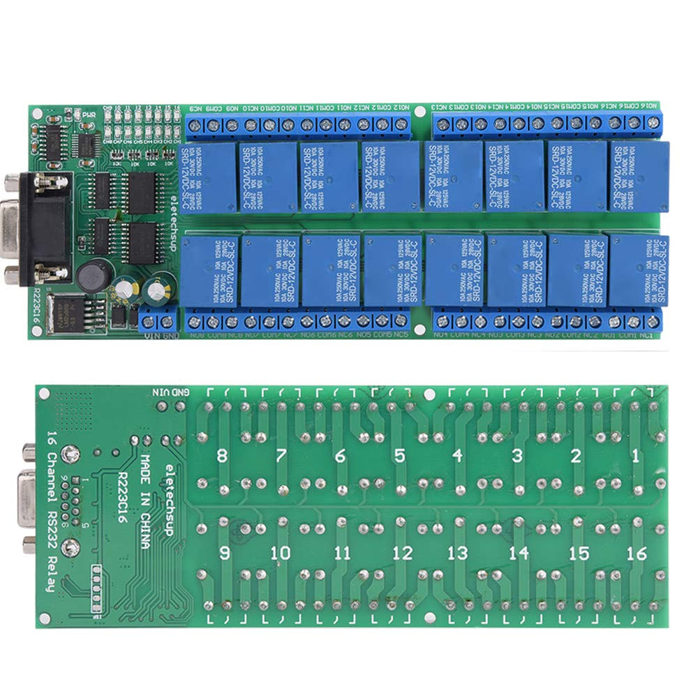 Jeanoko R223C16 16-Kanal-Relaiskarte DB9-Relaismodul Buchsenschnittstelle Serial Port Smart Module f
