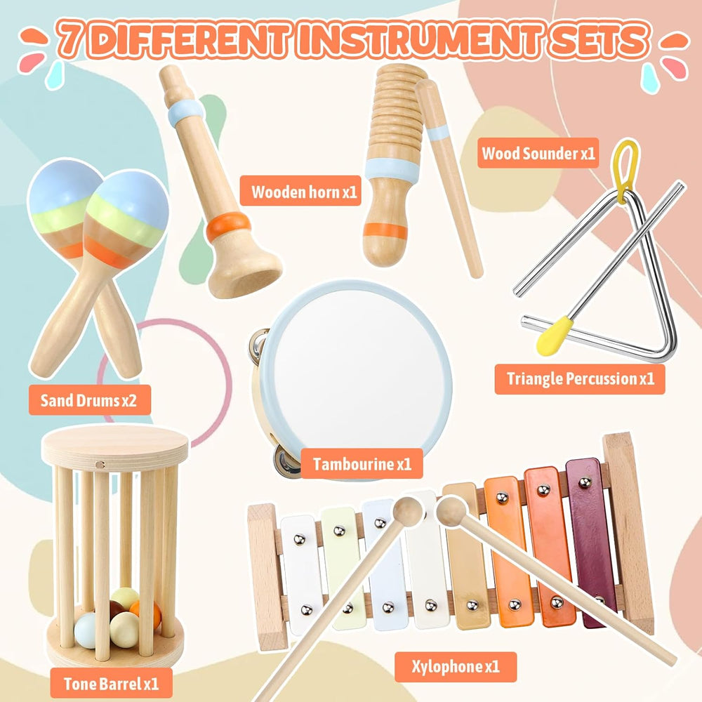 Jeinbuil Musikinstrumente 7er Set für Kinder, Holzspielzeug Kinderspielzeug ab 3 Jahre Xylophon Trom