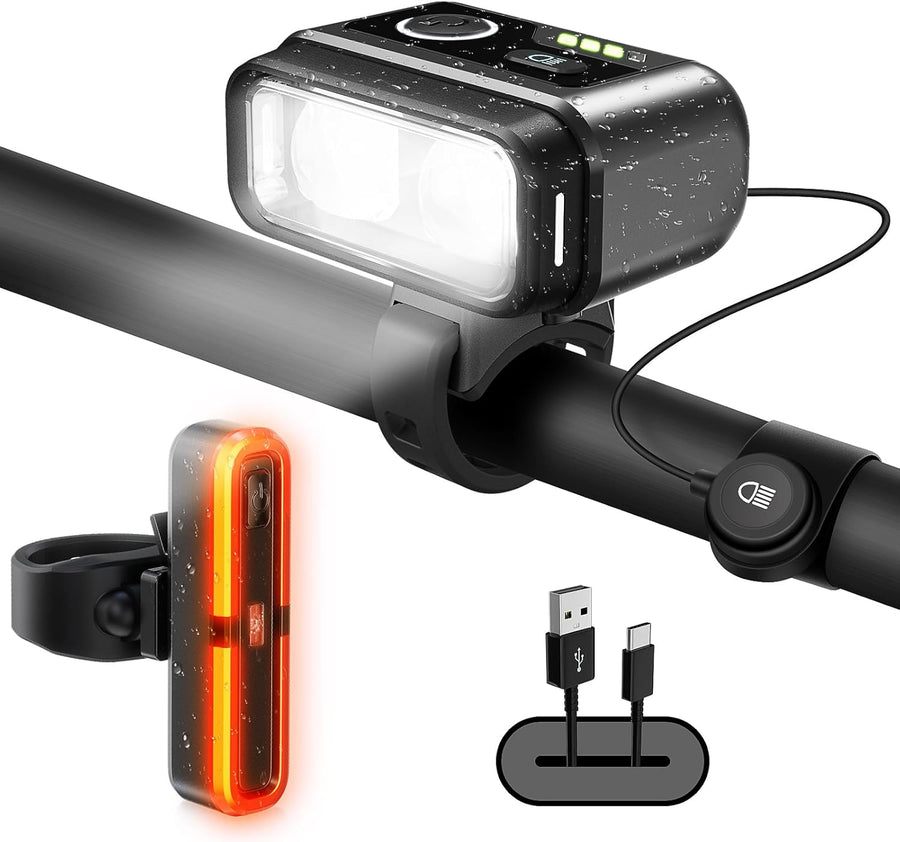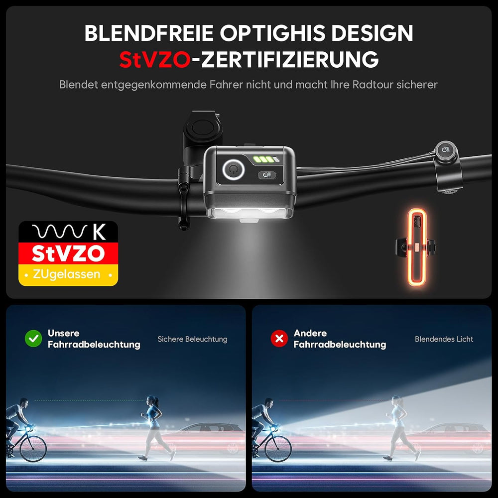 Fahrradlicht Set 100LUX, Fahrradrücklicht Mit Bremsfernlichtfunktion, Aufladbar Fahrradlampe mit 320