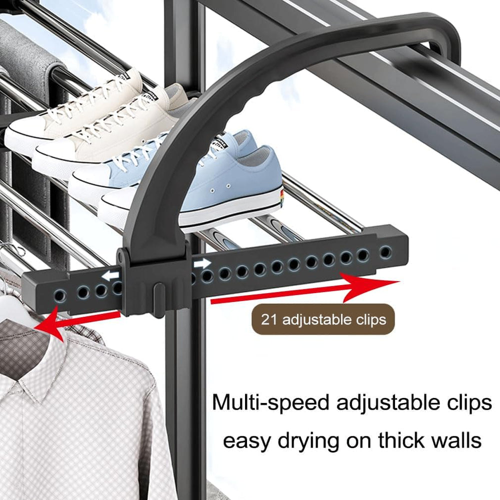 ausziehbarer Trockenständer, 6,6 m Trocknungslänge, multifunktional für Balkon und Geländer 64-110cm