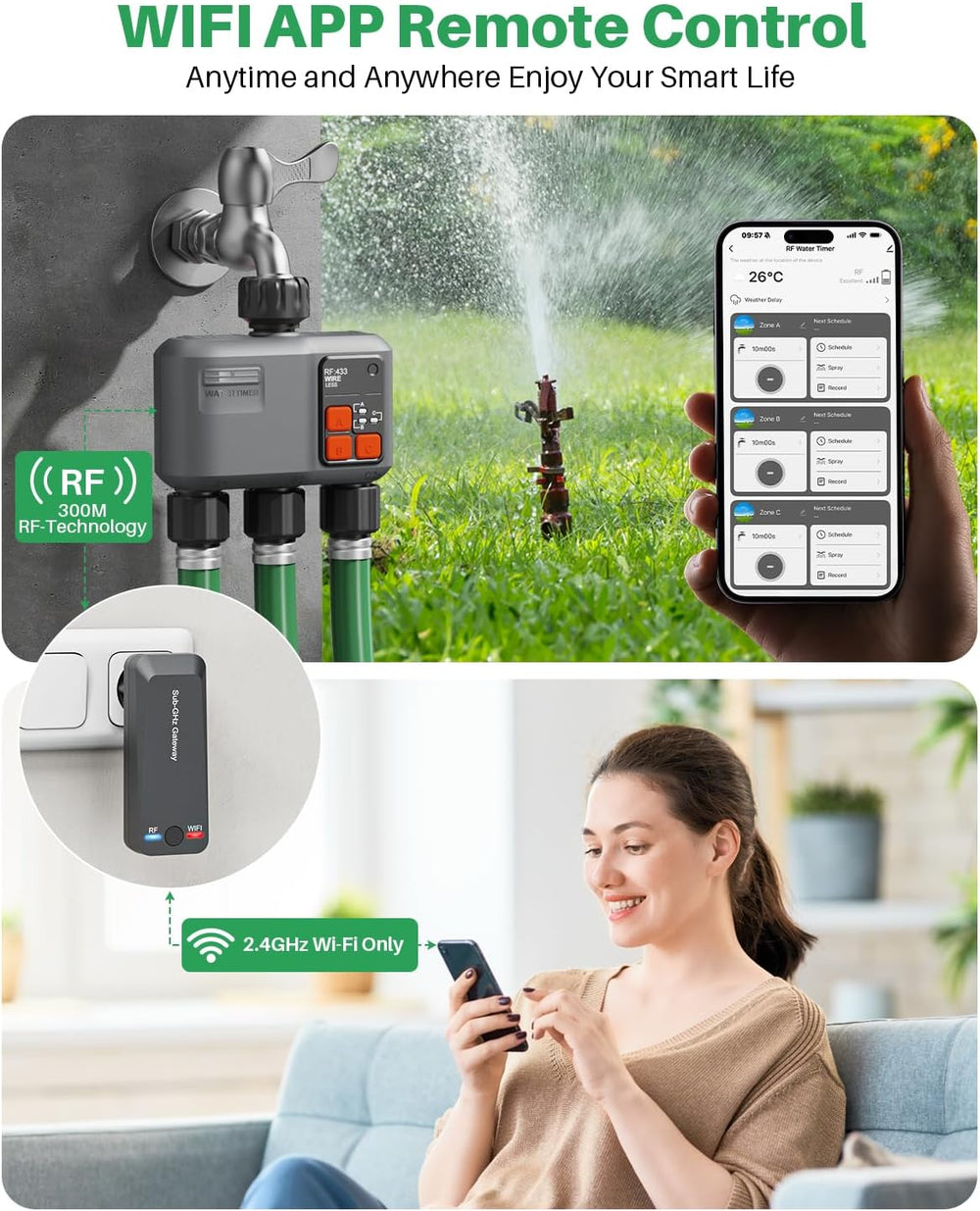 Bewässerungscomputer WLAN 3 Ausgänge mit 300M RF-Technologie, Bewässerungsuhr für Gartenbewässerung