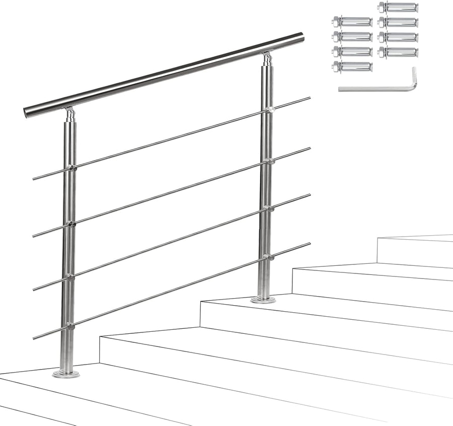 Joparri Treppengeländer 80cm mit 4 Querstreben, Edelstahl Handlauf Winkelverstellbar, Geländer für I