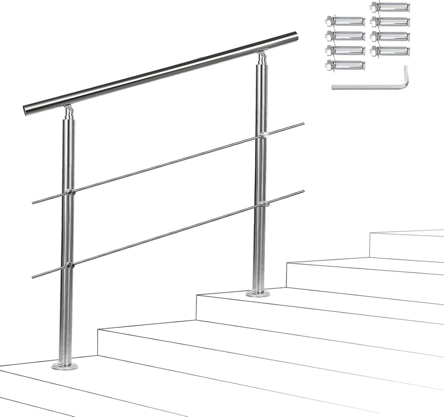 Joparri Treppengeländer 80cm mit 2 Querstreben, Edelstahl Handlauf Winkelverstellbar, Geländer für I