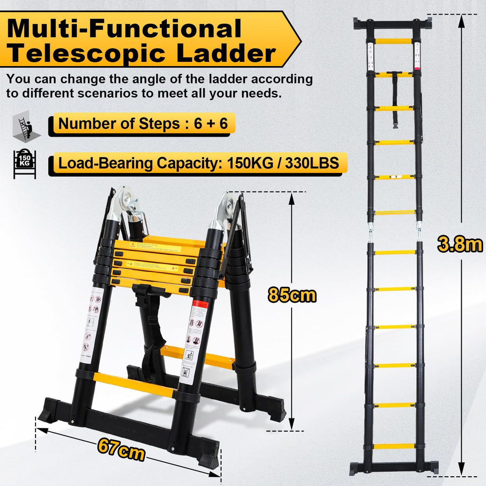 Joparri 3.8M (1.9+1.9) Teleskopleiter Klappleiter Aluminium, Rutschfester Mehrzweckleiter Tragbar Al