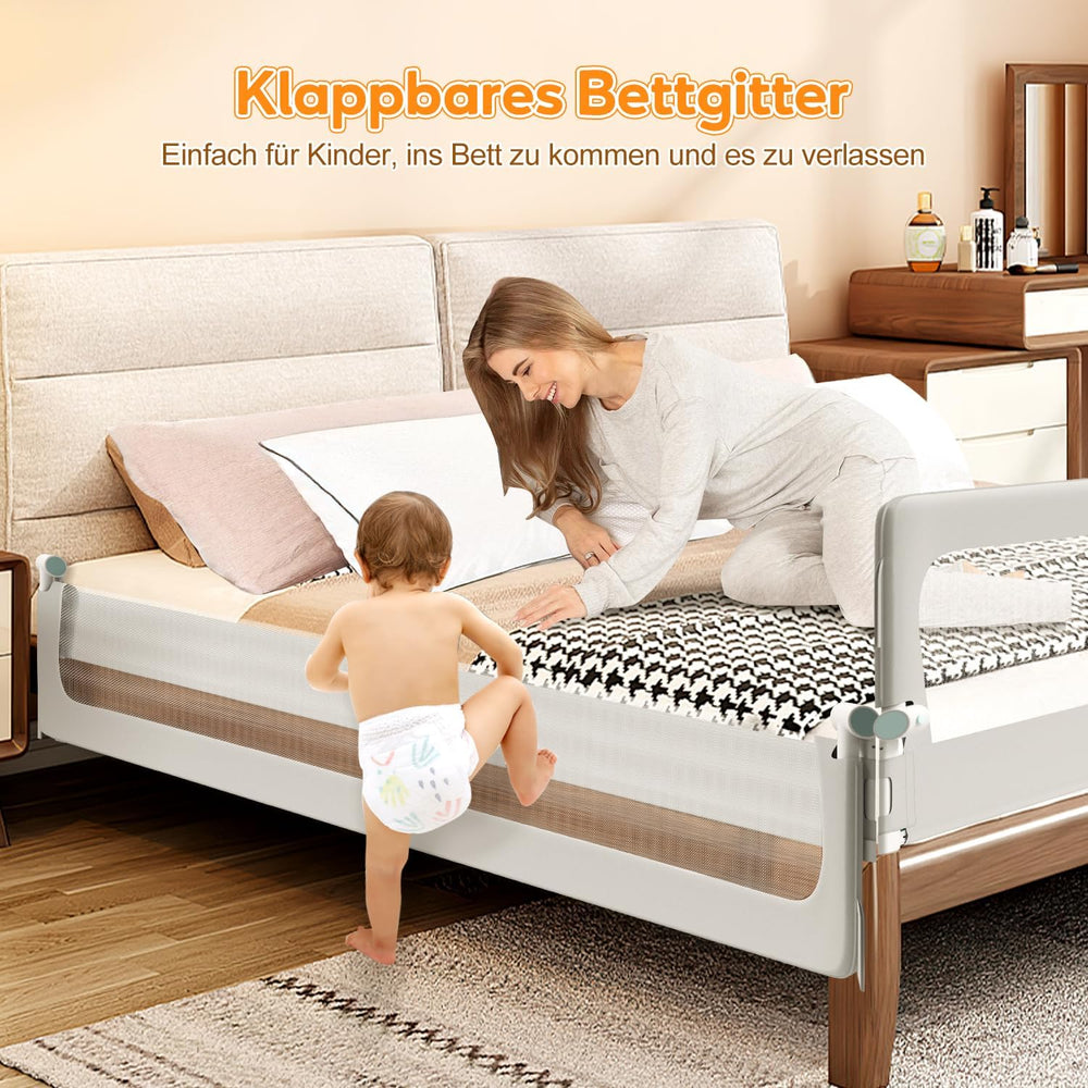 2X Bettgitter 200+150 cm Bettschutzgitter Schnellklapp Kinderbettgitter für Kinder,Rausfallschutz Bo