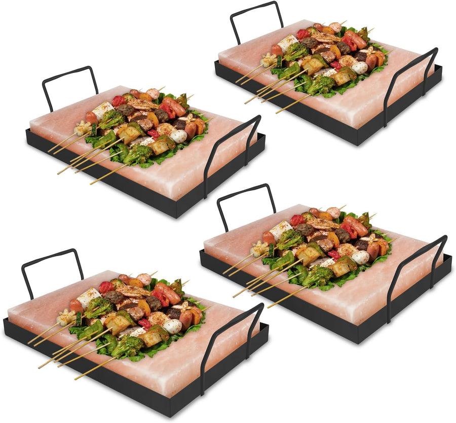 8er Pack XXL Salzstein zum Grillen, 20x30x3cm Salz Grillsteine Mit Eisenplatte, Wiederverwendbar Sal