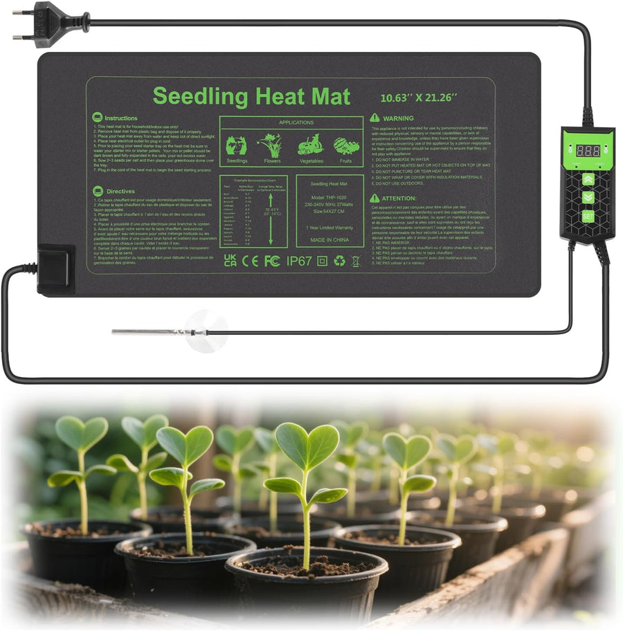 1 Stück Heizmatte Pflanzen mit Thermostat, Wärmematte IP67 Wasserdicht, 27W Heizkissen mit Timing-Fu