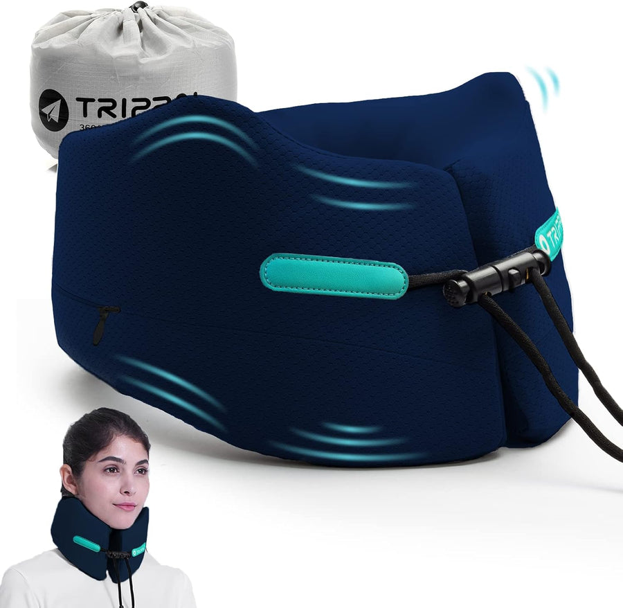 Joscoal Memory Foam Nackenkissen Reise Reisekissen Luxuriös Flugzeug Kinnstütz Travel Pillow Navy Bl