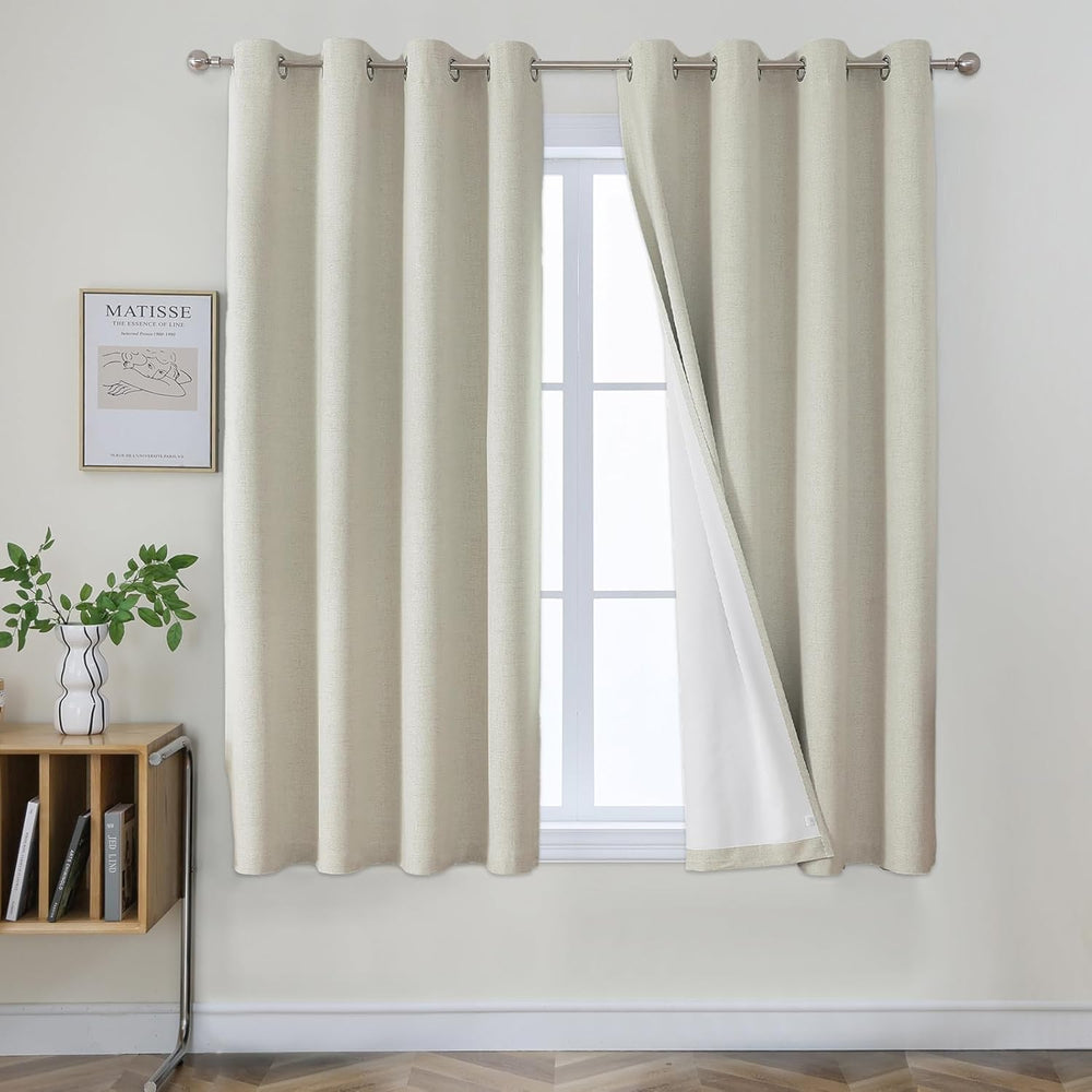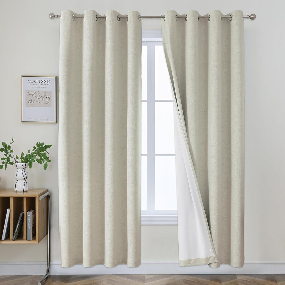 Joydeco 100% Blickdichte Vorhänge mit Ösen Gardinen Leinenoptik 2 Stück, Verdunkelungsvorhang Leinen