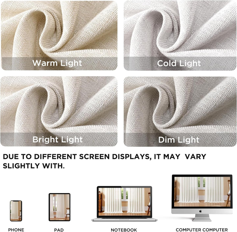 Joydeco Leinen-Vorhänge für Wohnzimmer, halbtransparente Vorhänge, 183 cm lang, Wohnzimmervorhänge,