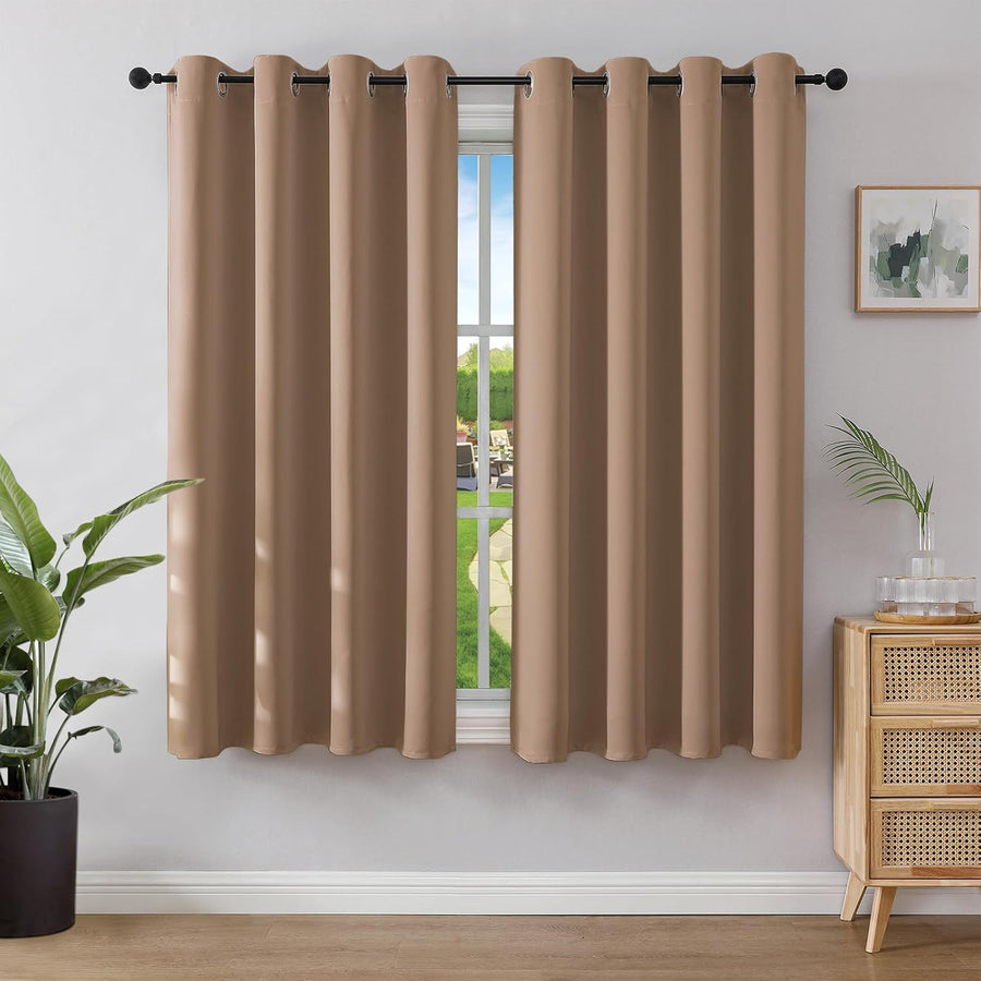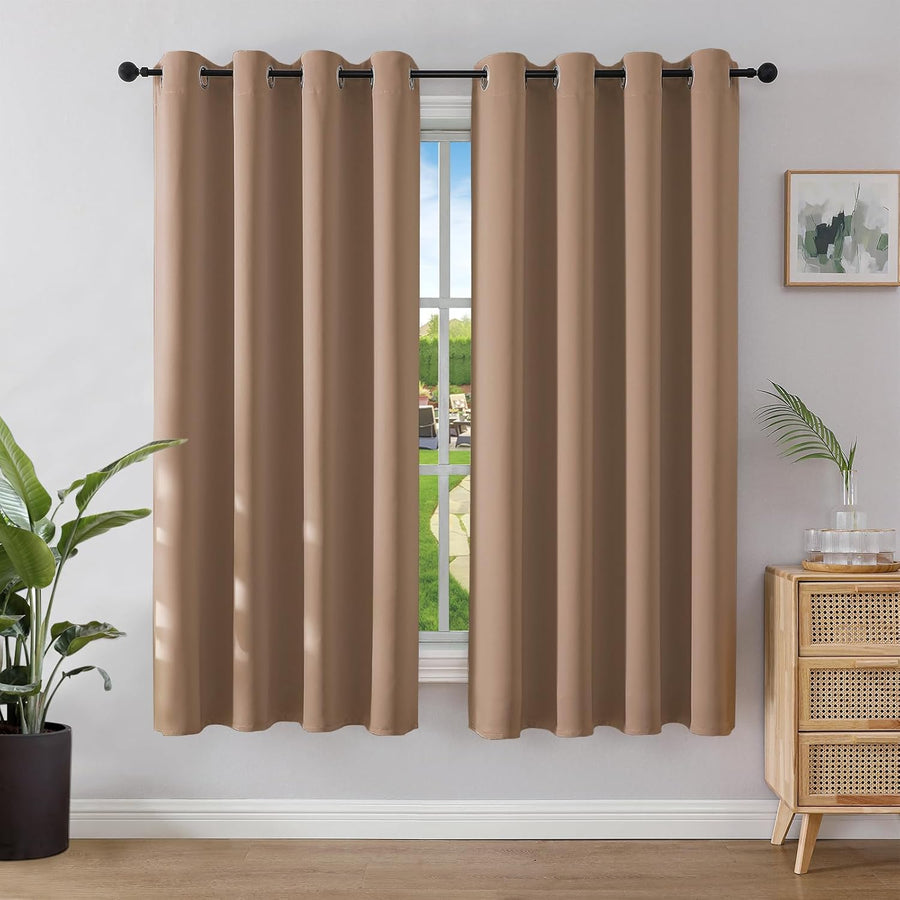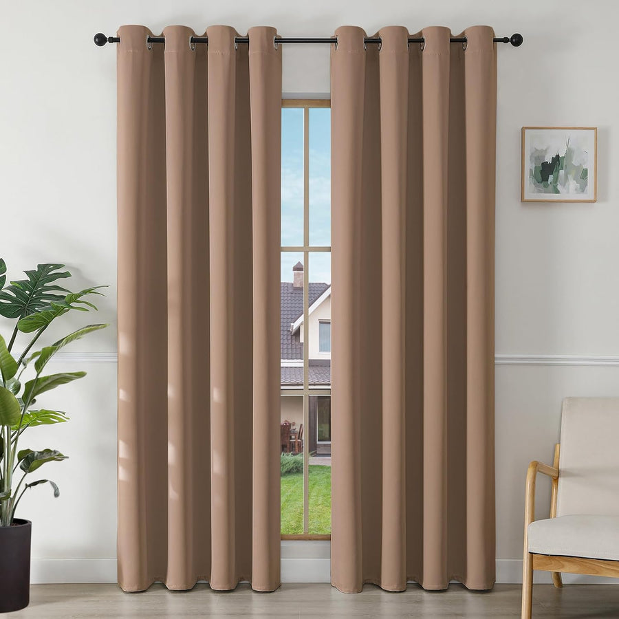 Joydeco Blickdichte Vorhänge mit Ösen Gardinen 2 Stück H 158 x B 132 Verdunkelungsvorhang Cappuccino