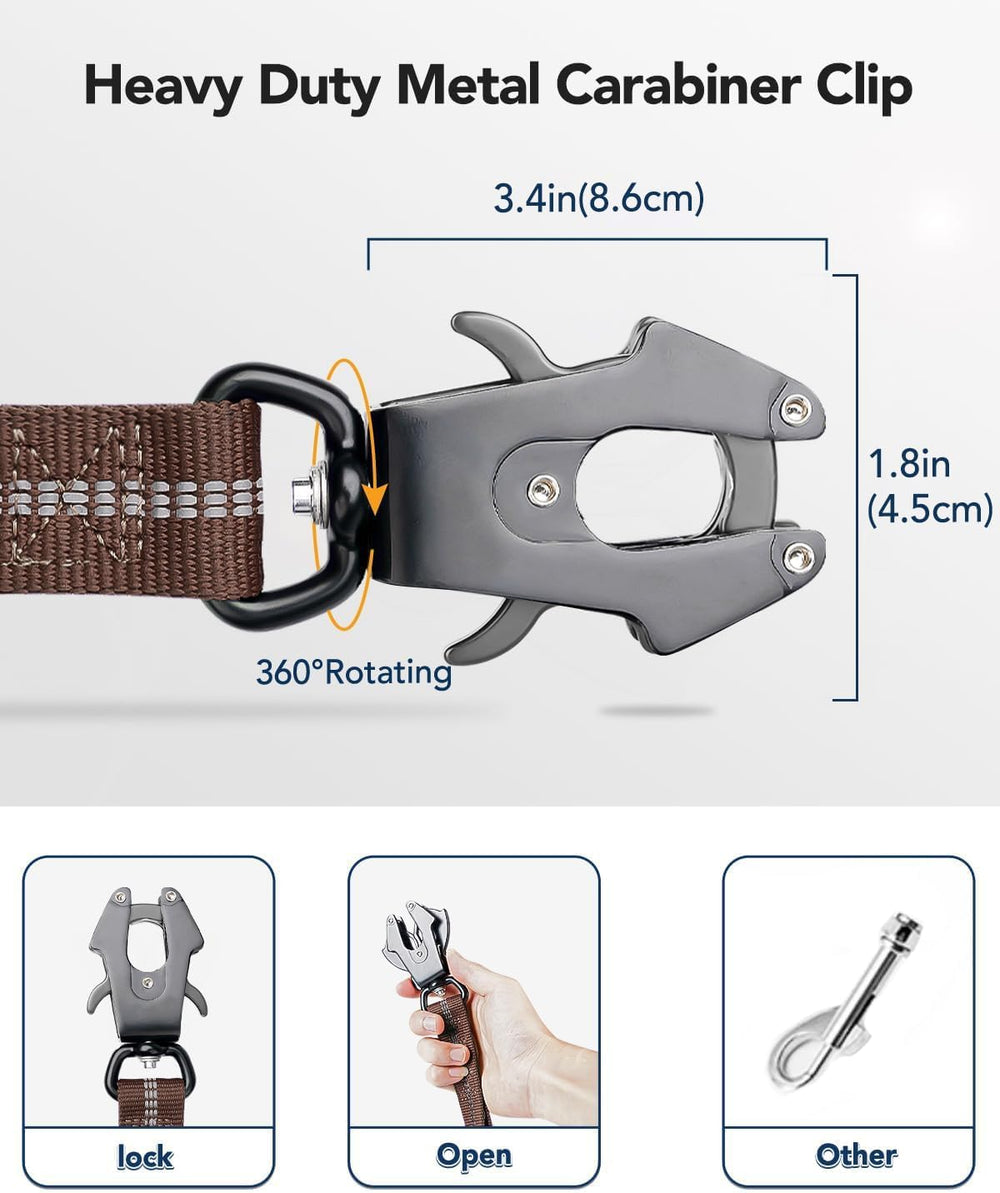 Joytale Taktische Hundeleine, 1.2m-1.8m Bungee Hundeleine mit 2 Gepolsterten Griffen, Autosicherheit