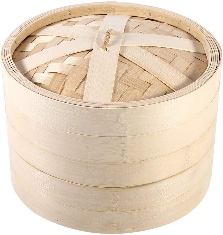 Bambus-Dampfgarer, 2 Ebenen, Gemüse-Dampfkorb, Knödelmacher, vielseitig verwendbar, gesundes Kochen,