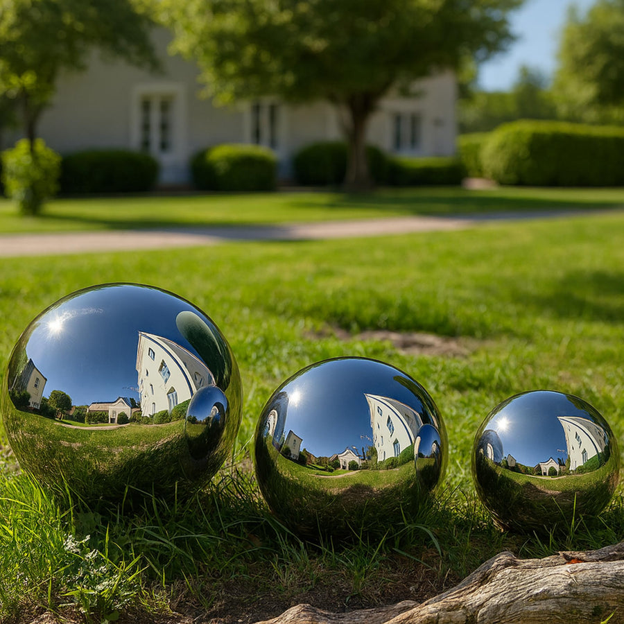 Köhko 3er Gartenkugeln poliert aus hochwertigem Edelstahl 10, 20 und 30 cm Dekokugeln-Set Ø 10-20-30