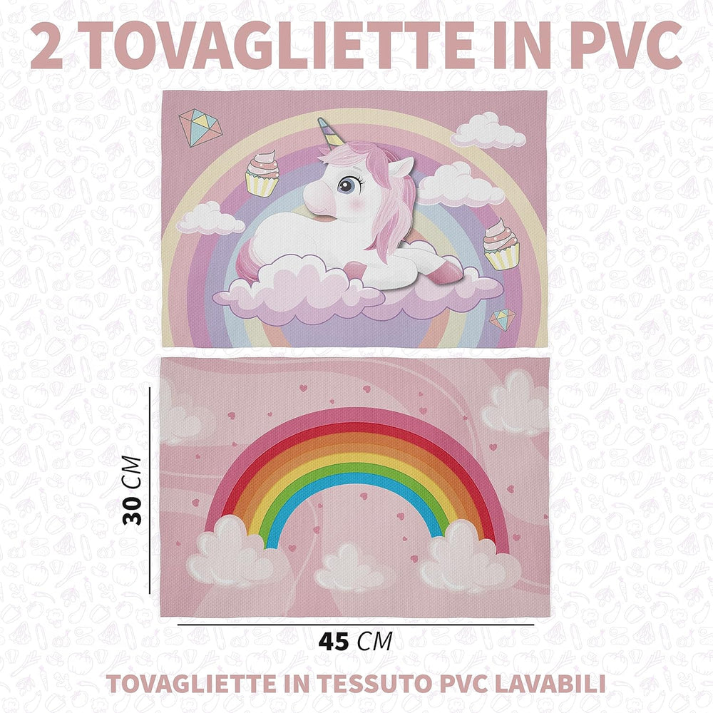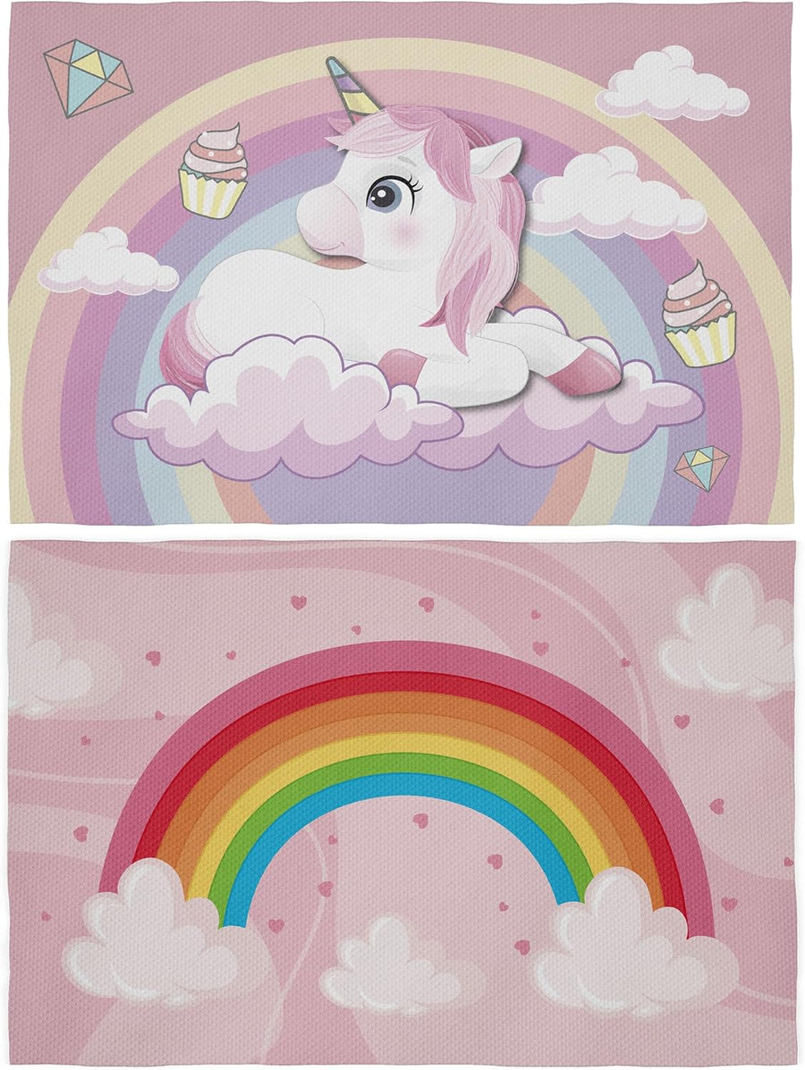Tischsets für Snacks, Schule, Mädchen, 30 x 45 cm, Tischset aus Stoff, für Mädchen Einhorn und Regen