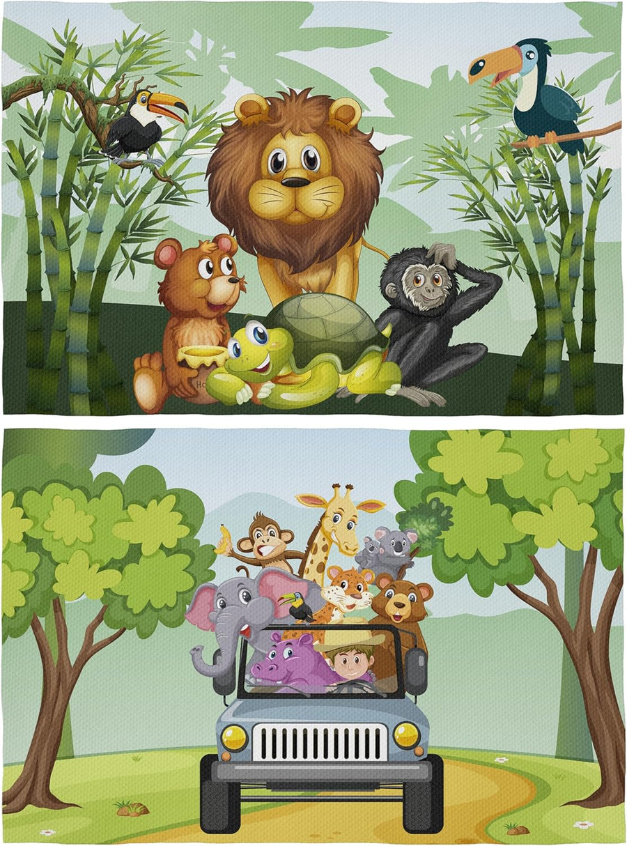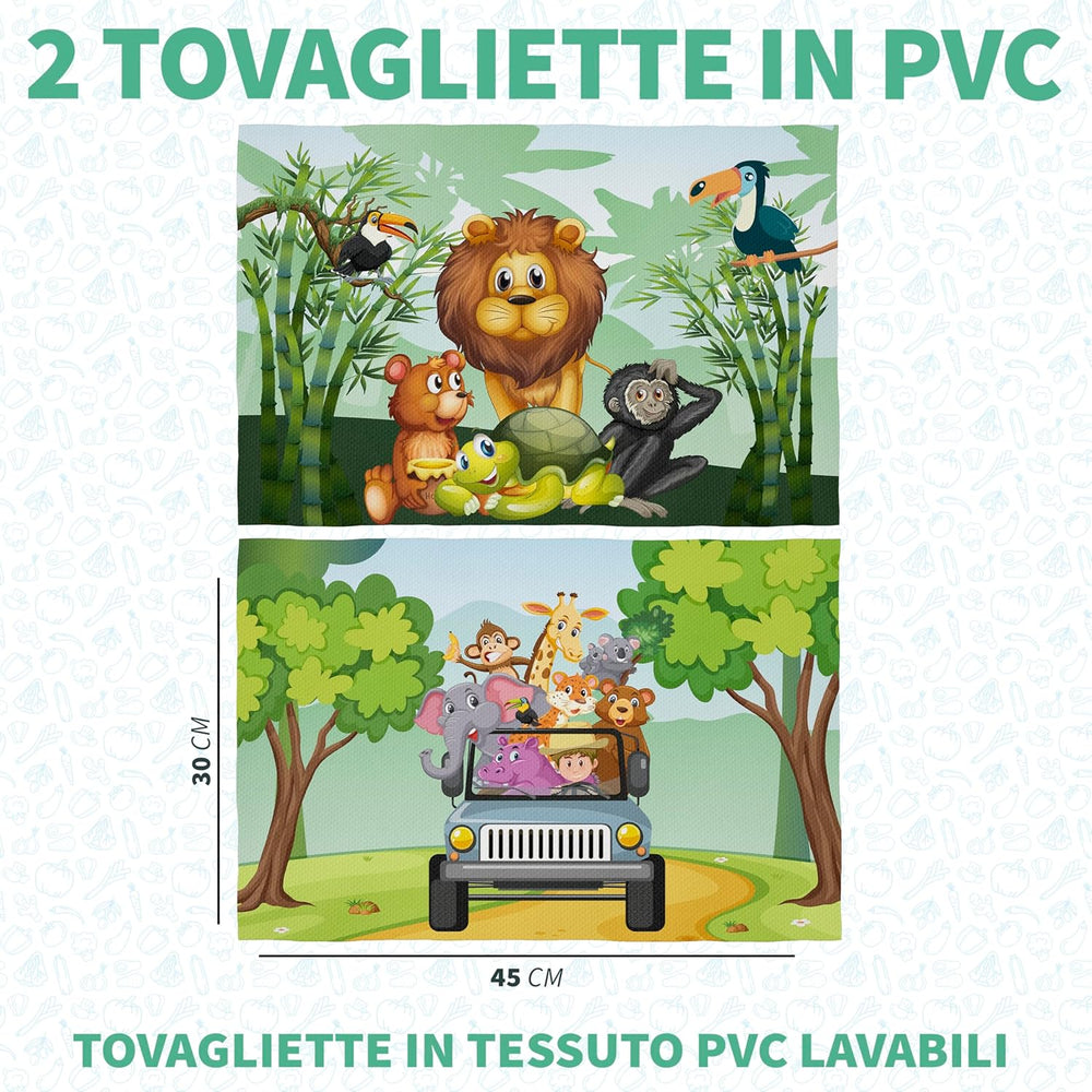 Platzsets Snacks Schule Kinder - 2 x Tischset Dschungel Kinder 30 x 45 cm - Tischset aus Stoff für d