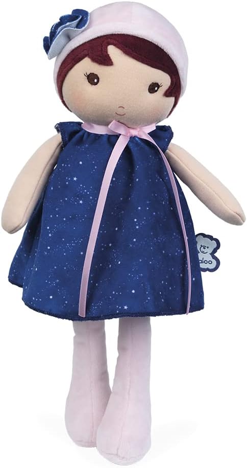 KALOO - Tendresse – Meine 1. Puppe aus violettem Stoff – Stoffpuppe 32 cm – Blumenkleid – Abnehmbare