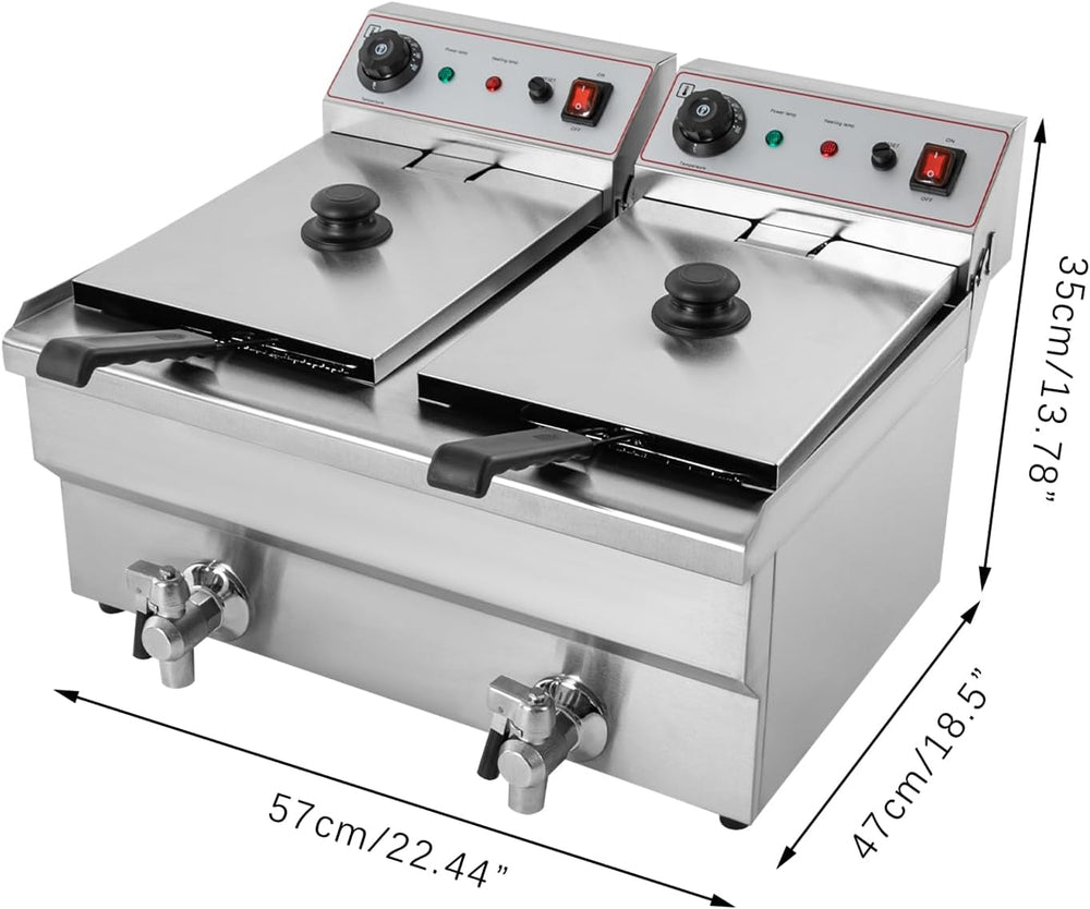 Elektrische Friteuse Gewerbliche, 6000W Küchenbratmaschine 2 * 10 L Körben, Einstellbare Temperatur