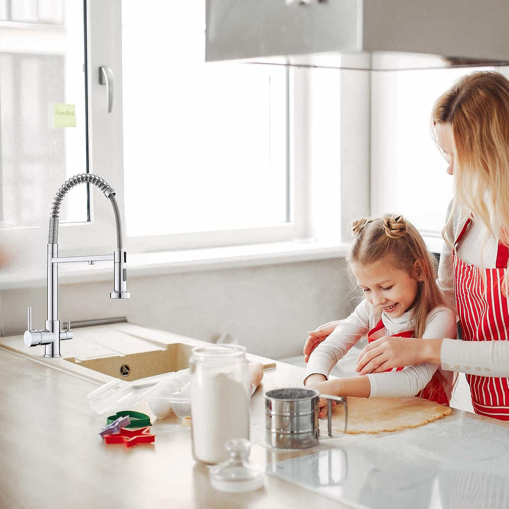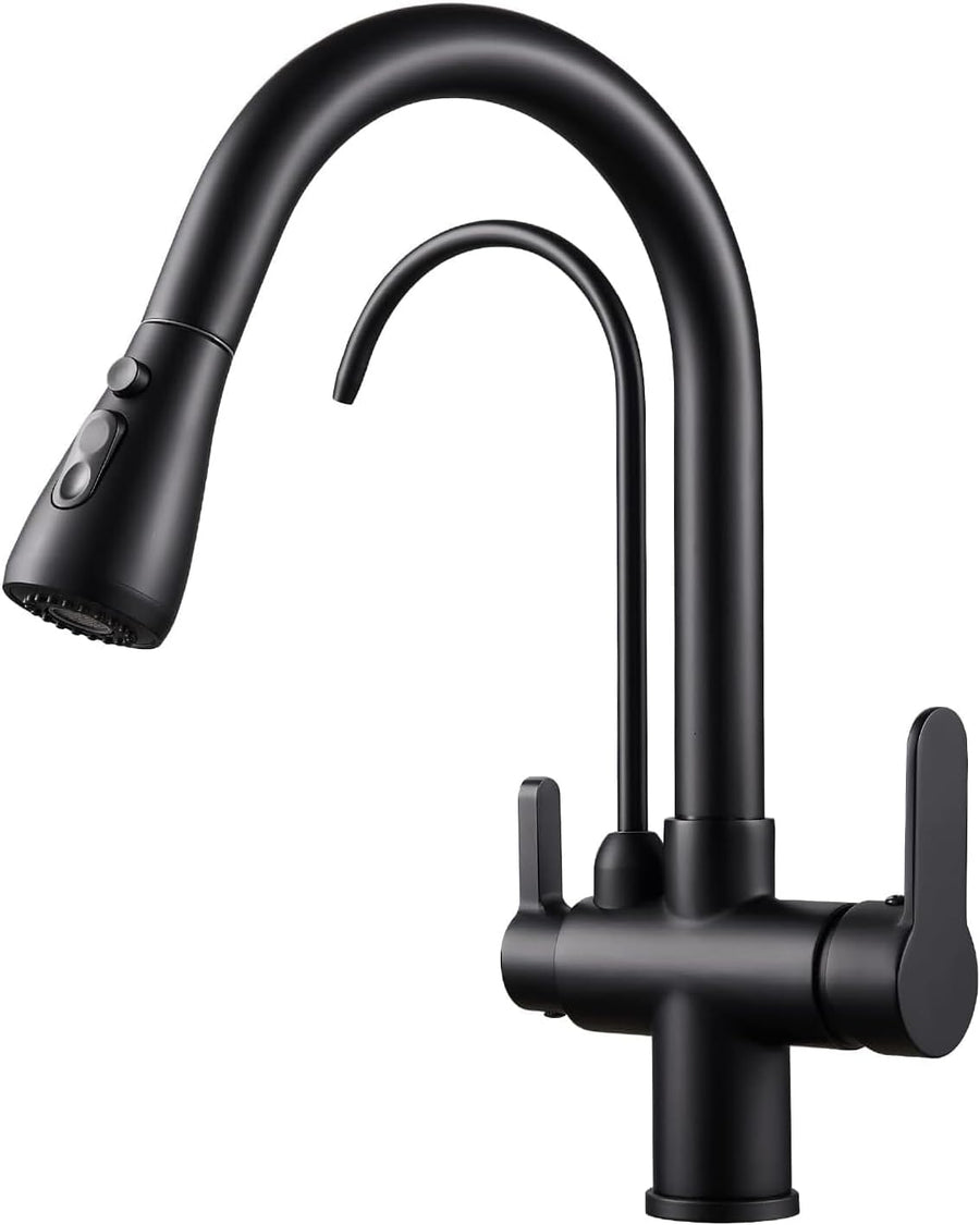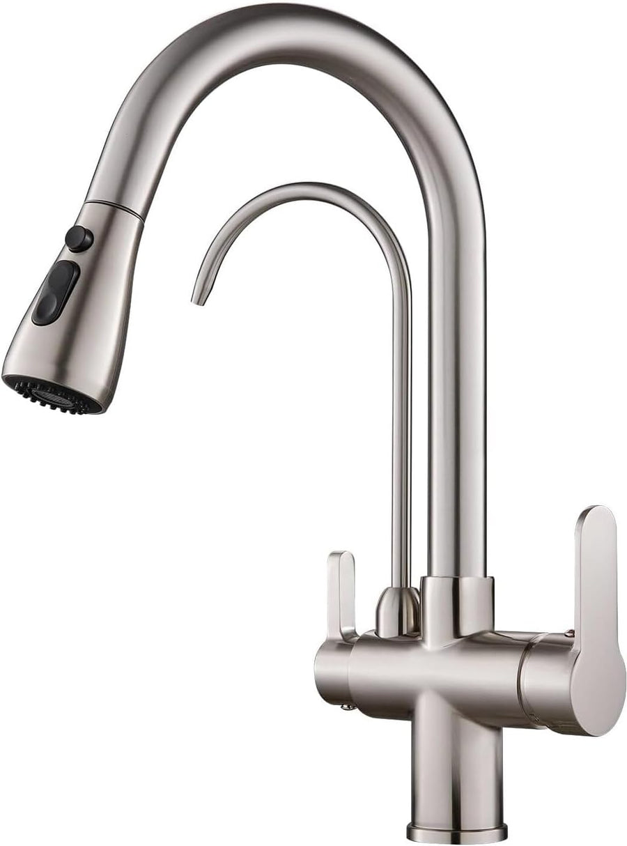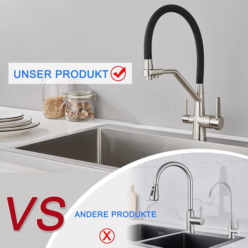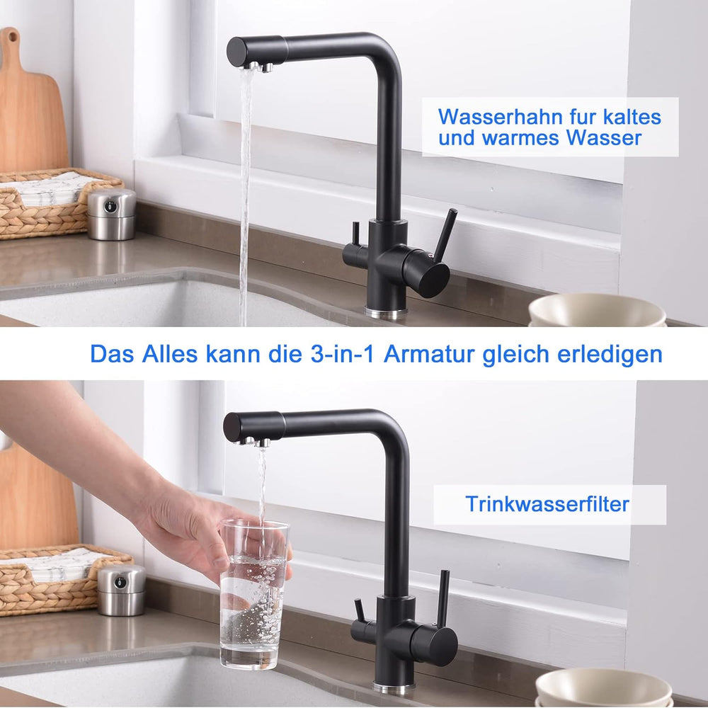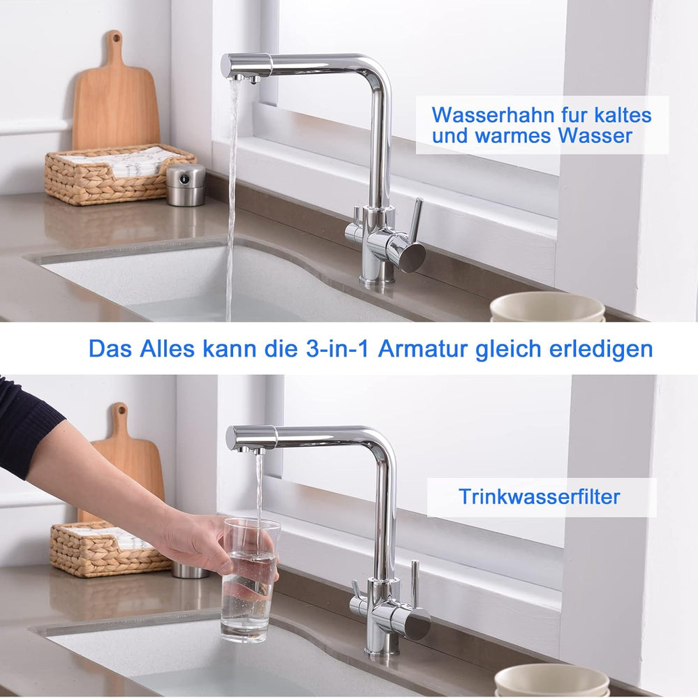 KEOKBON Filter-Küchenarmatur mit Trinkwasserhahn, 3-Wege-Küchenarmatur mit hohem Bogen, 3 in 1 Misch