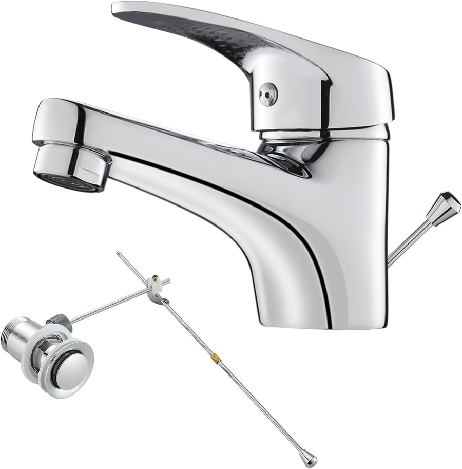KEOKBON Wasserhahn Bad, Waschtischarmatur Einhebelmischer, Mischbatterie mit Zugstange Keine Schmutz