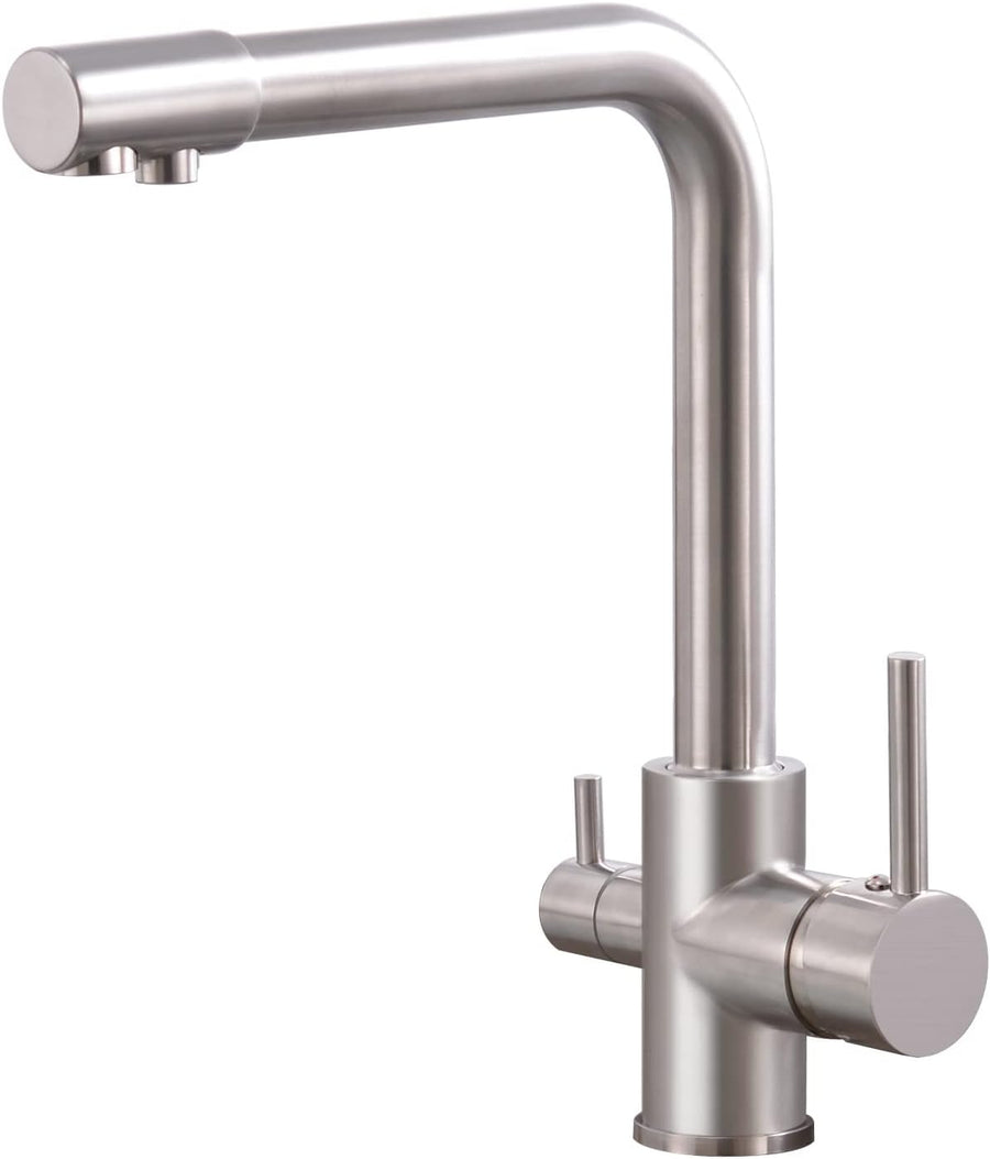 KEOKBON Küchenarmatur 3 Wege Wasserhahn, Tinkwasserhahn und Küchenmischer 360° Drehbar, Gebürstet Ar