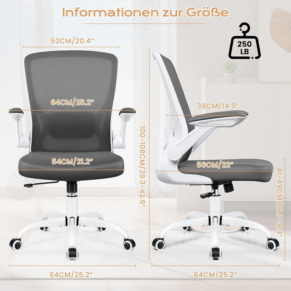 KERDOM Bürostuhl, Ergonomischer Schreibtischstuhl mit klappbarer Armlehnen, Mesh Computerstuhl Arbei