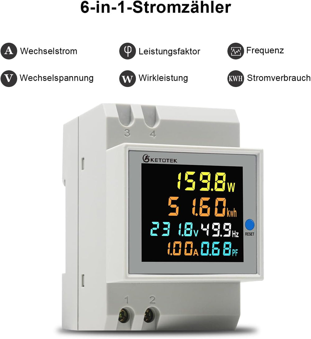 KETOTEK LCD Digitaler Wechselstromzähler Stromzähler Hutschiene 1 Phasig Energiezähler KWh Zähler Le