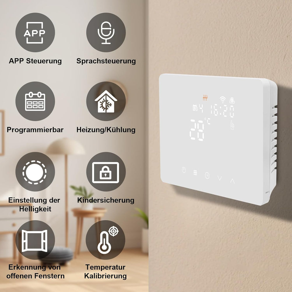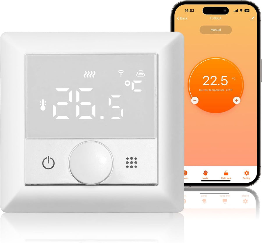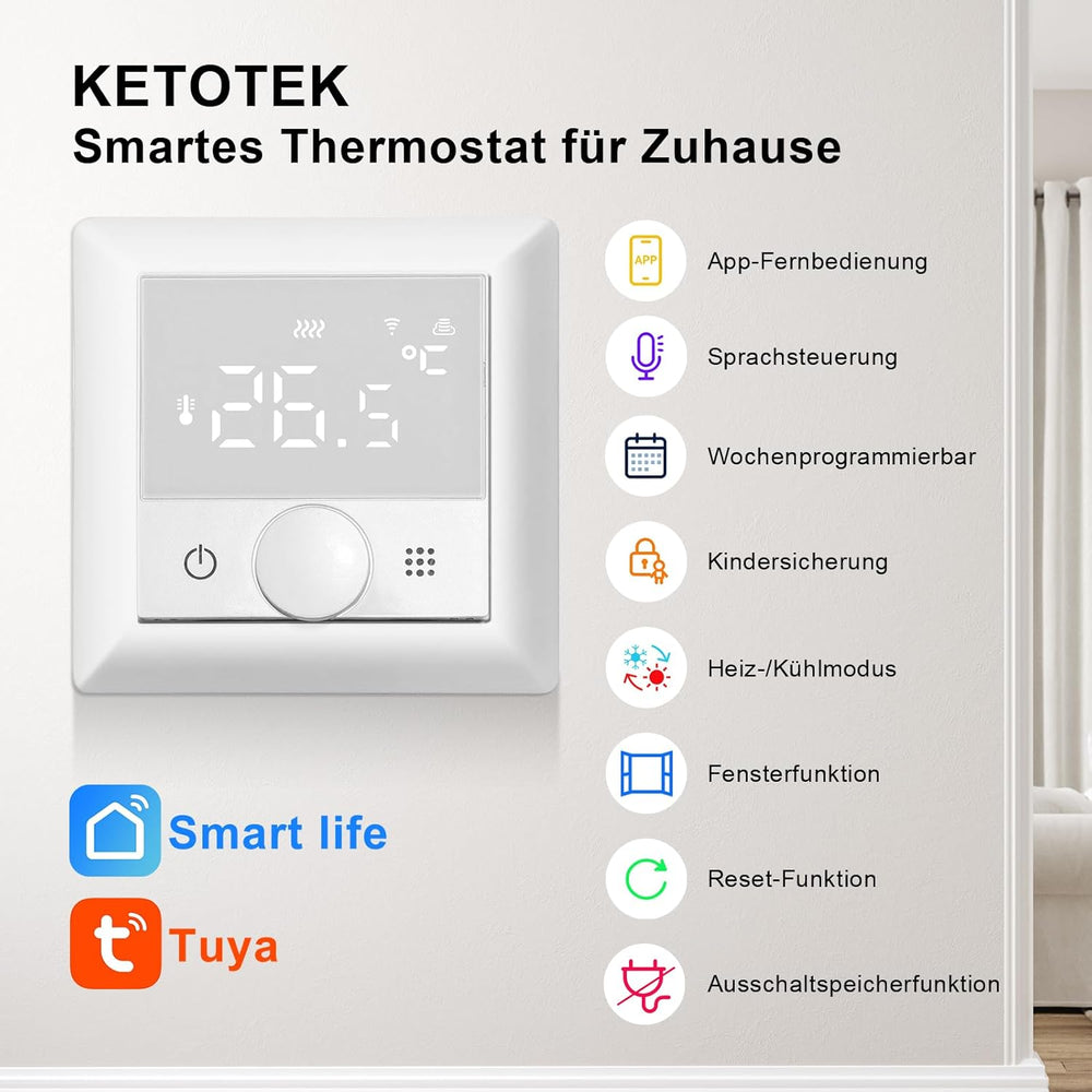 KETOTEK Smart Thermostat Fussbodenheizung Elektrische 16A, WiFi Raumthermostat Fussbodenheizung Wand