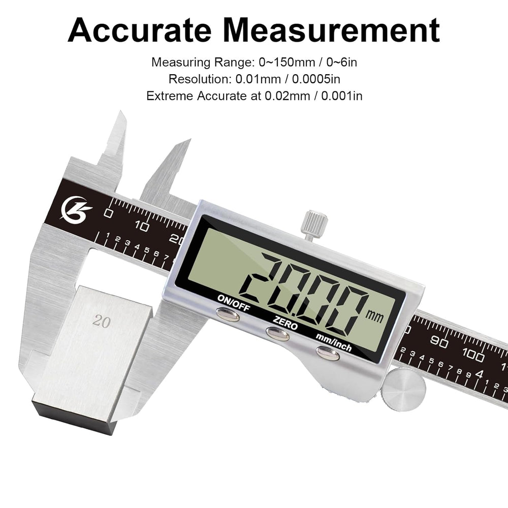 KETOTEK Digitaler Messschieber aus Edelstahl 150 mm/6 Zoll Messwerkzeug LCD-Display Messschieber mit