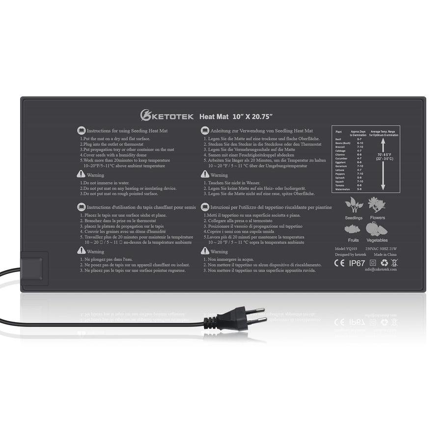 KETOTEK Sämling Heizmatte Pflanzen Anzucht Pflanzenheizmatten Samen Wärmematte Wasserdicht 230V 220V