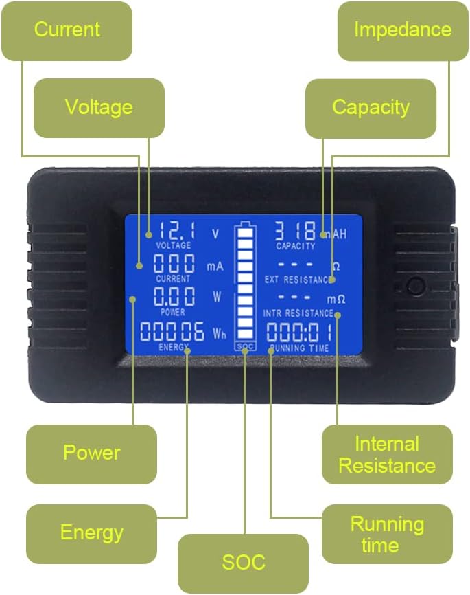 Batteriezähler DC Voltmeter Amperemeter Energie Monitor LCD Multimeter Digital Spannung Strom Cap Oh