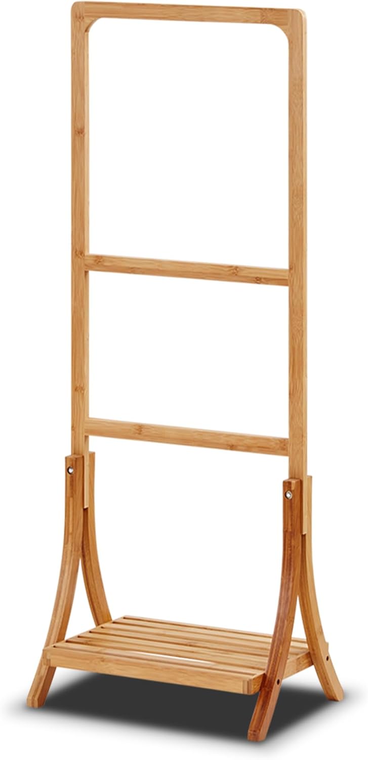 KHG Herrendiener aus Bambus Echtholz für Kleidung, Sackohalter mit Hosenbügel sowie Schuhablage, Stu