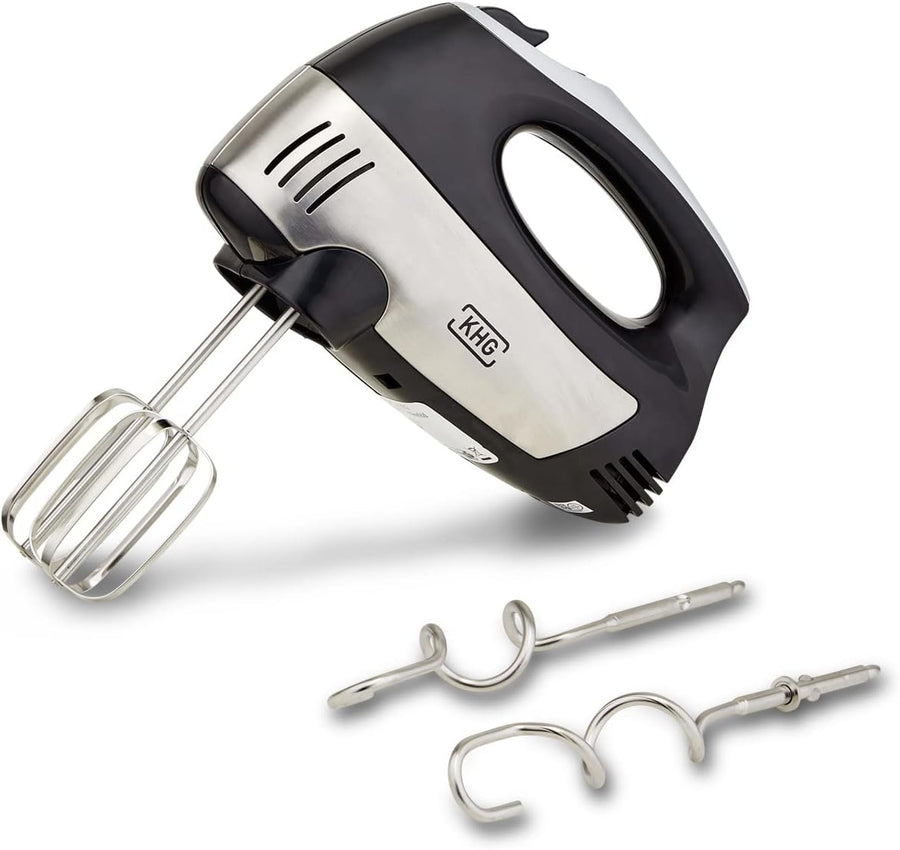 KHG Elektrischer Handmixer HM-305 SE Edelstahl 300 Watt | Handrührer mit 5 Geschwindigkeiten und Tur