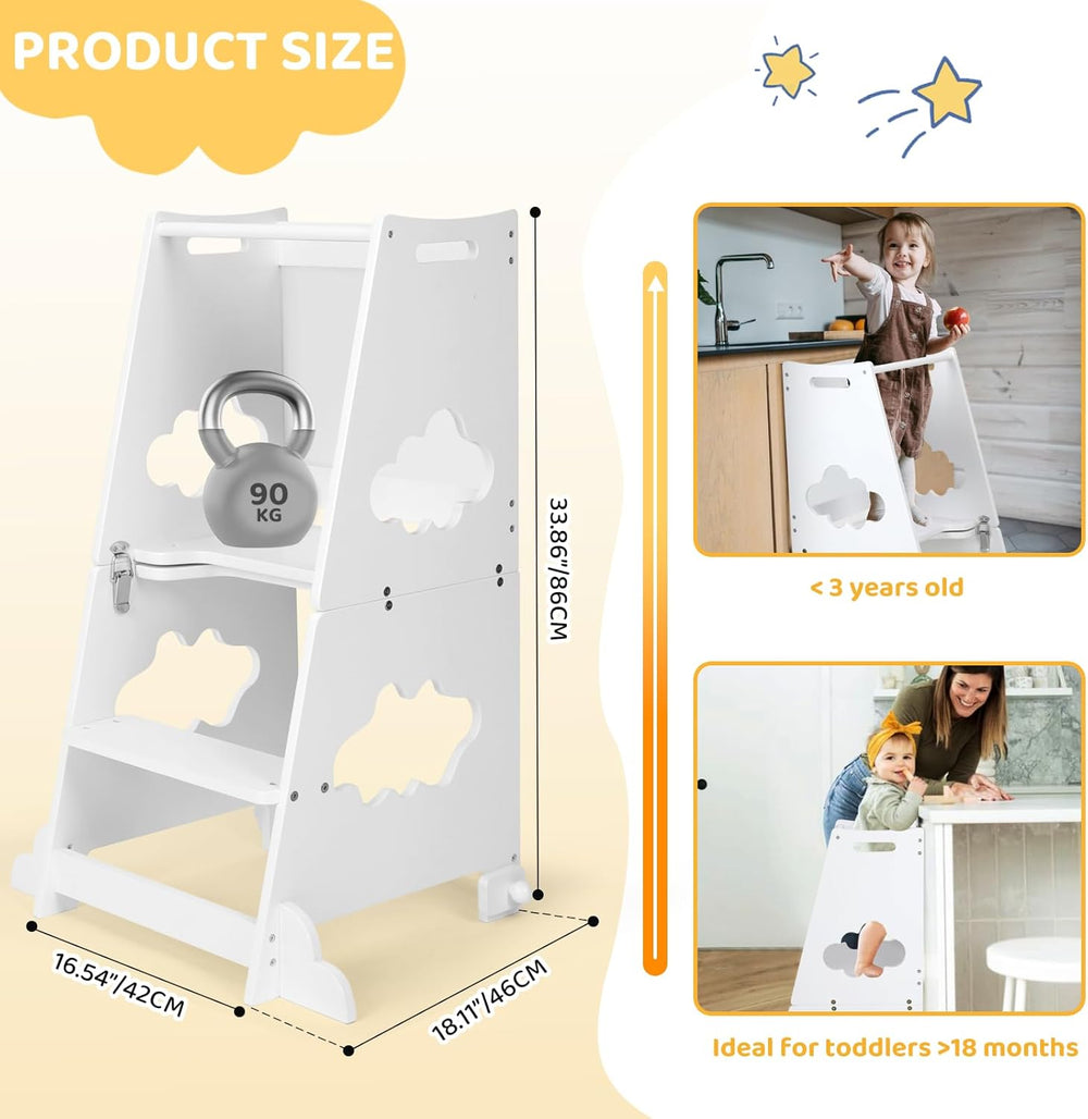 KIDINIX Lernturm ab 1 Jahr, 3 in 1 Montessori Learning Tower mit Sicherheitsgeländer und Tafel, Klap