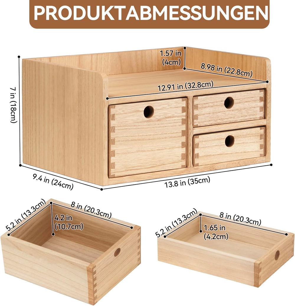 KIRIGEN Holz Schreibtisch-Organizer mit Schubladen Heimarbeitsplatz Bürobedarf Holz Aufbewahrungsbox