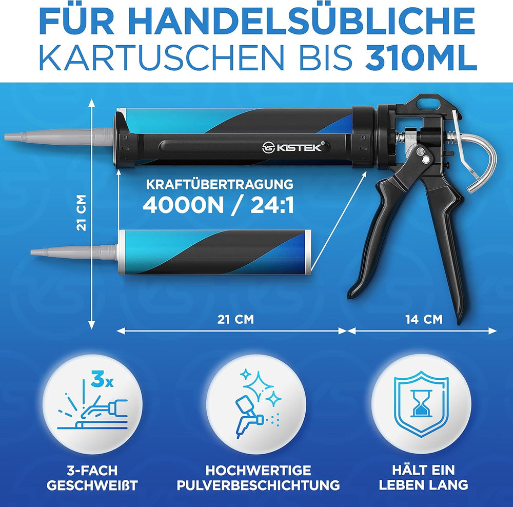 KISTEK® Profi Kartuschenpresse (150-310ml) mit starker 24:1 Übersetzung [inkl. Ratgeber] - Hochwerti