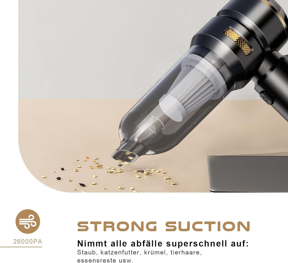 Handstaubsauger, 26KPA Handstaubsauger Akku Kabellos, 4-in-1 Auto Staubsauger Stark, Akku Staubsauge