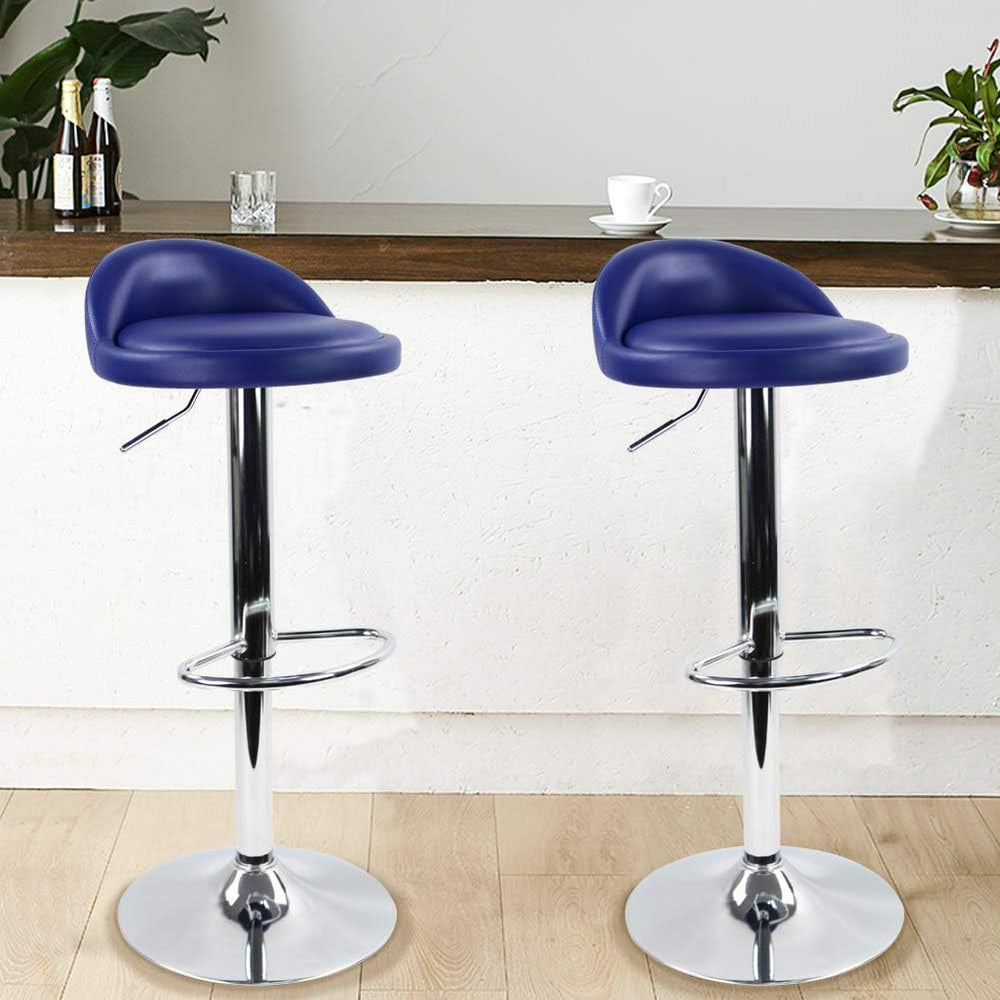 KKTONER Barhocker Tresenhocker höhenverstellbar 60-80cm mit Fussstütze PU Leder Blau, Blau