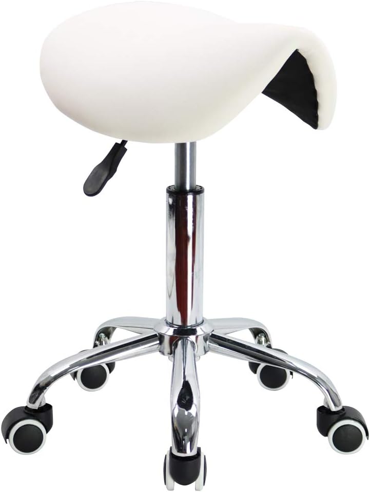 KKTONER Sattelhocker Arbeitshocker höhenverstellbar drehbar Rollhocker Bürohocker mit Sattelsitz Wei