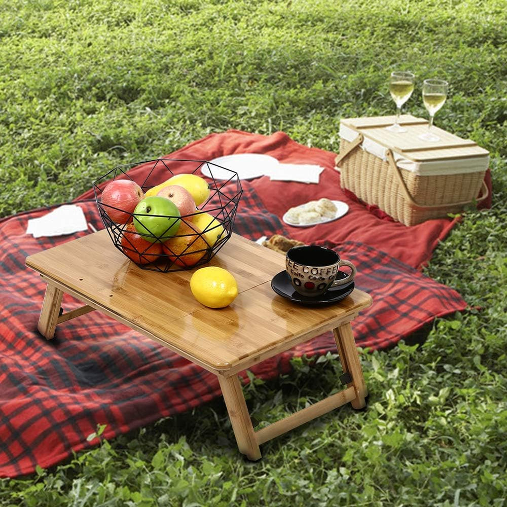 KKTONER Laptoptisch Laptopständer höhenverstellbar Bed Tablett 55x35cm faltbar aus Bambus Gelb-1, Ge