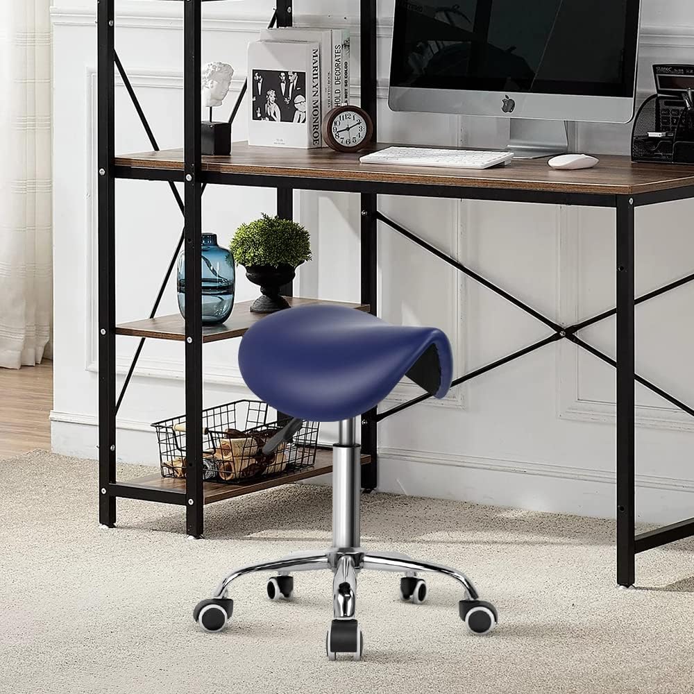KKTONER Sattelhocker Arbeitshocker höhenverstellbar drehbar Rollhocker Bürohocker mit Sattelsitz bla