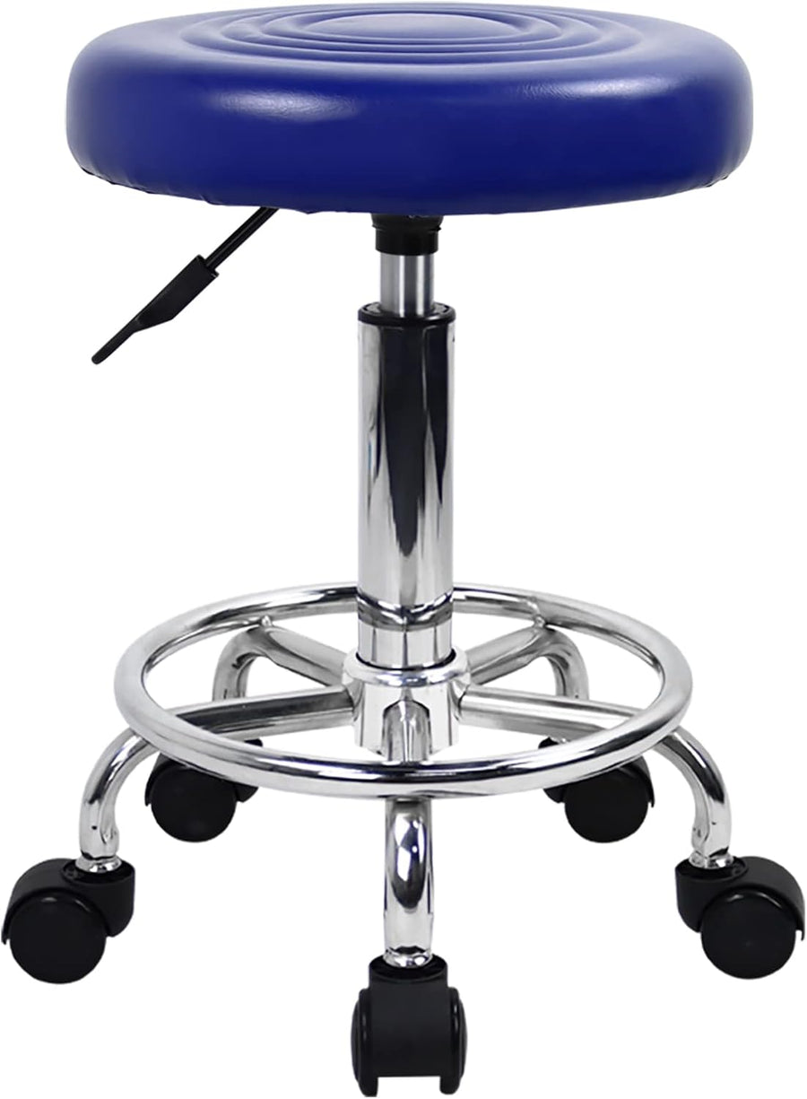 KKTONER Rollhocker höhenverstellbar drehbar Barhocker Arbeitshocker aus Kunstleder Bürohocker Blau,