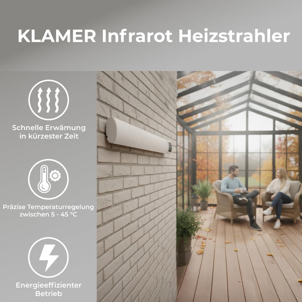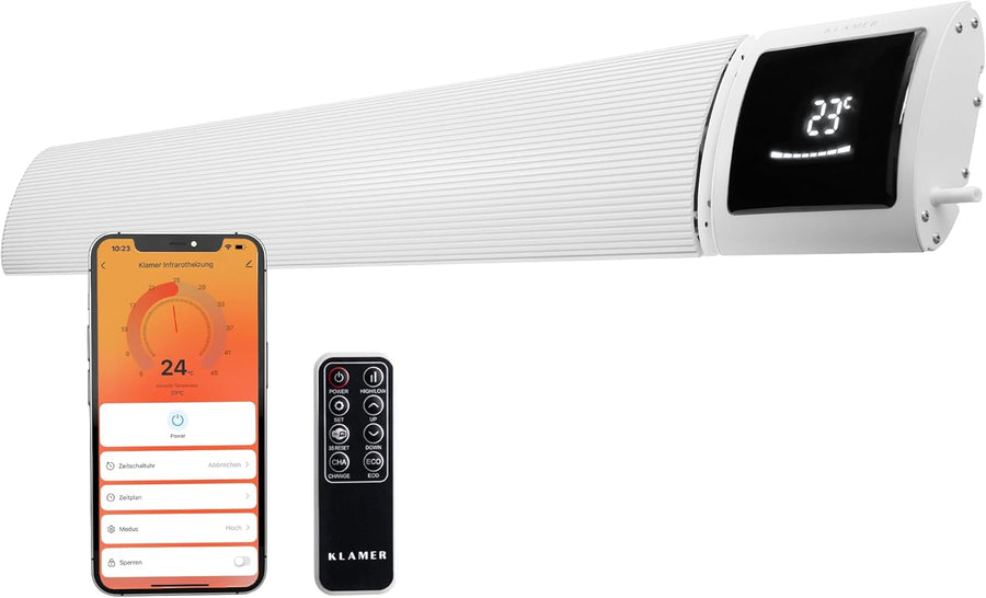 KLAMER Infrarotheizung 2600 W – WLAN Heizstrahler mit App- & Timer, Decken- & Wandmontage, Fenster-o