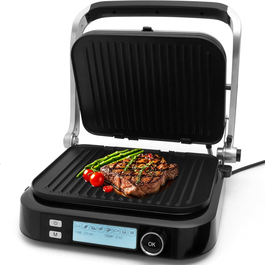 KLAMER Kontaktgrill, 7 Automatikprogramme, abnehmbare Platten, Antihaftbeschichtung, 2100W starker P