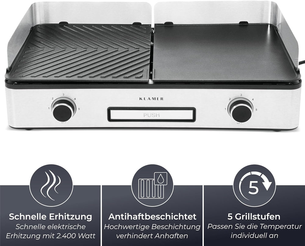 KLAMER Elektrogrill, antihaftbeschichtete und abnehmbare Duo-Platten, separate Temperatureinstellung